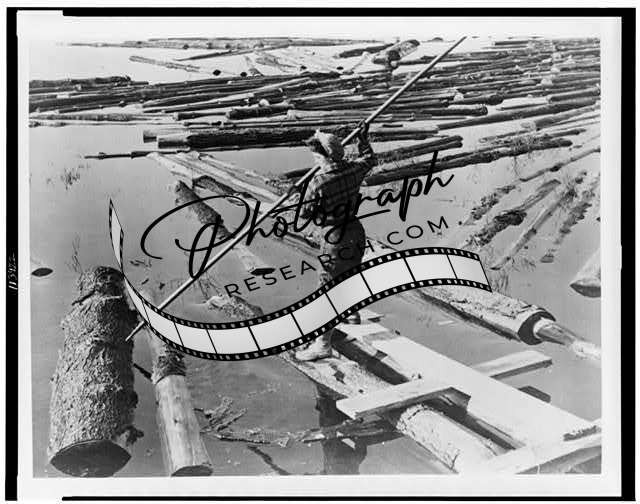 Girl lumberjack works with pike pole,in river,New Hampshire,NH,lumber mill,1944?