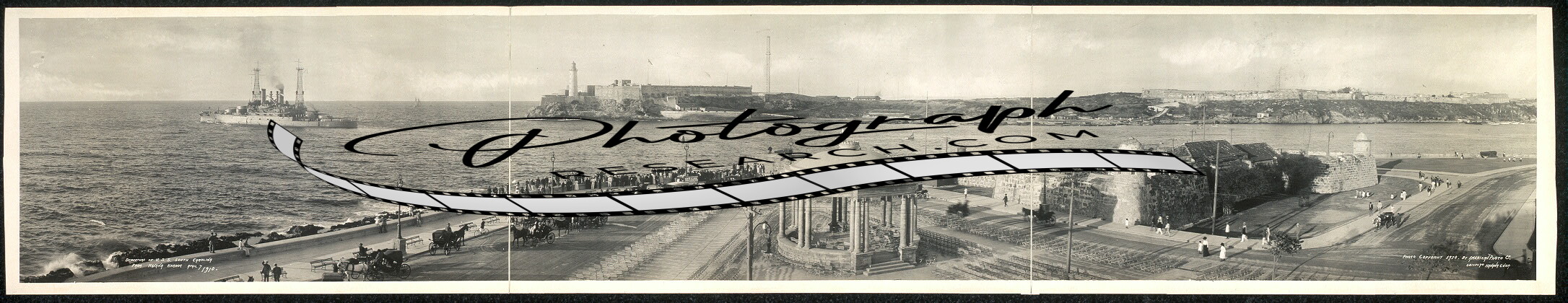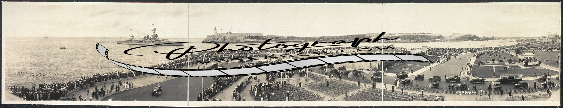 1928 Panoramic: U.S.S. Texas entering Havana Harbour from Malecon
