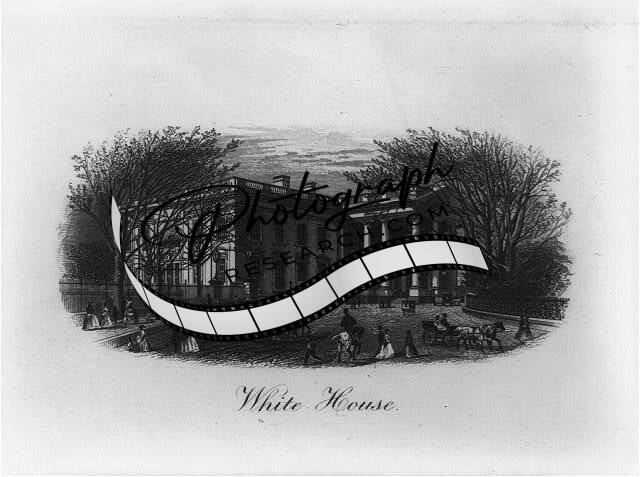 White House,Washington,DC,people walking,horseback,carriages,lawn,1850-1900