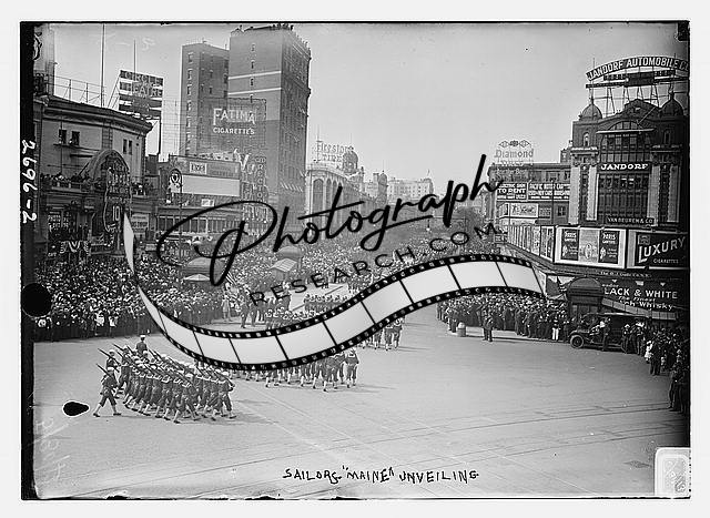Summary: Photo shows parade before the unveiling ceremonies for the memorial to the battleship Maine, which had exploded in the harbor of Havana, Cuba, during the Spanish-American War of 1898. In 1913, the monument was placed at the Columbus Circle and 59th Street entrance to Central Park in New York City. (Source: New York Times, Central Park Web site, and Flickr Commons project, 2009)