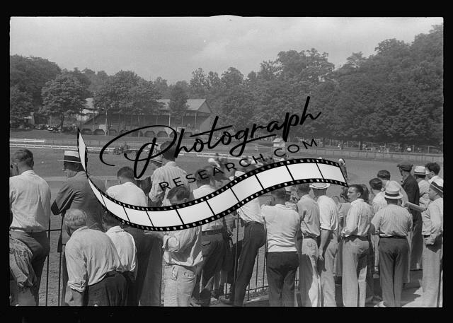 Watching horse race,Lancaster,Ohio,OH,Fayette County,August 1938,FSA,2
