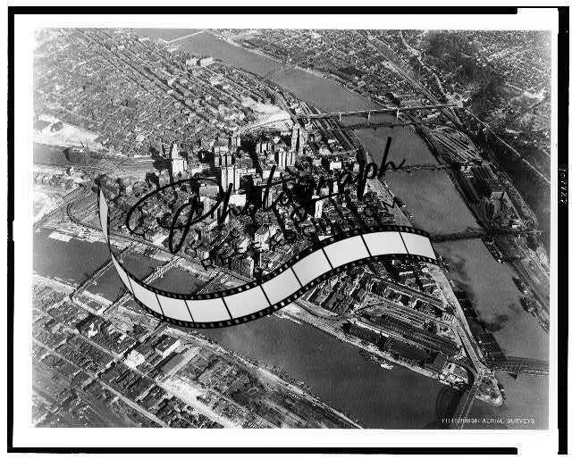Aerial view,Monongahela River,Allegheny,buildings,Pittsburgh,Pennsylvania,c1930