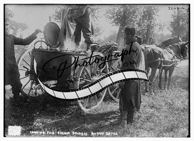 Cooking for French soldiers during battle,horse-drawn cart,men,Bain News Service