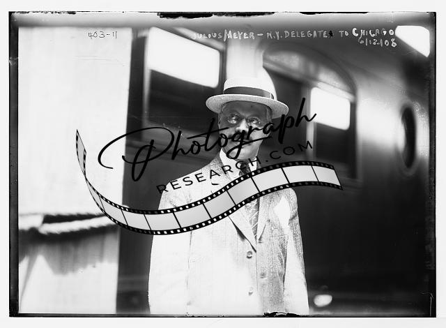 Julius Meyer,N.Y. Delegate to Chicago on train platform,New York,June 12,1908