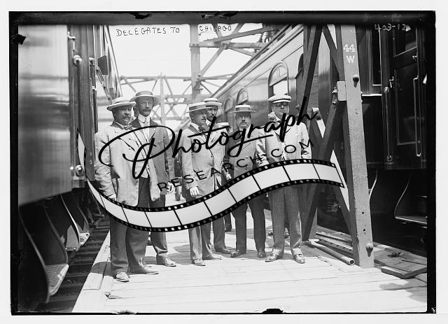 Delegates to Chicago,on train platform,one man holding a cane,June 12,1908