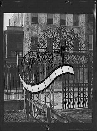 Park gate,houses,dwellings,ironwork,New Orleans,Louisiana,LA,Arnold Genthe,1920