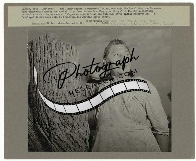Parker, Ariz. Apr. 1942. Mrs. Ruby Snyder, Chemehuevi Indian, who said she heard