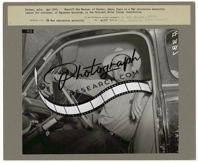 Parker, Ariz. Apr. 1942. Sheriff Jim Washum, of Parker, where there is a War Rel