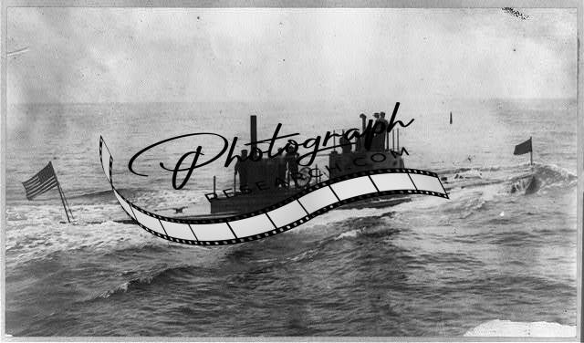 The Lake submarine,crew members on top,1908-1917,United States flag