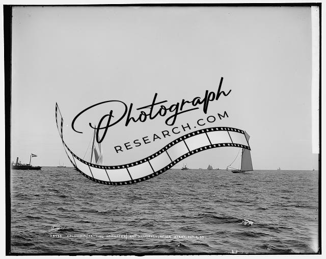 Columbia setting spinnaker,Shamrock,after start,America's Cup Races,boats,1899