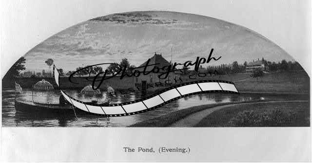 Mary Baker Eddy's House,The Pond,Evening,Man in Row Boat,1894,Victorian House