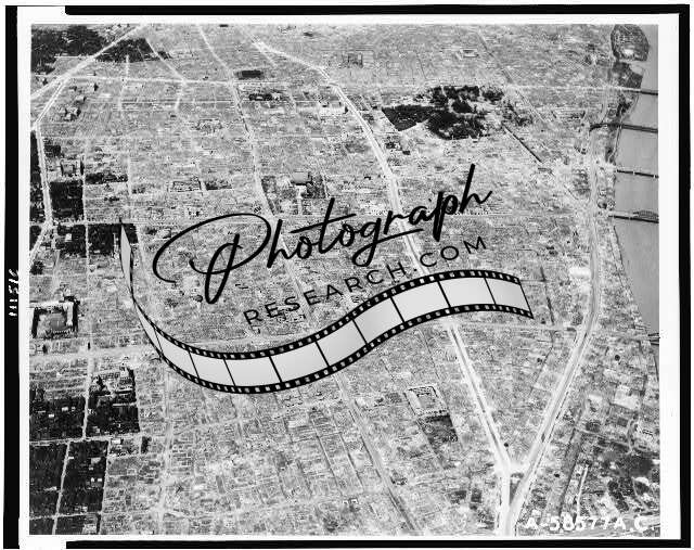 Aerial view bomb damage in Tokyo, Japan, WWII 1945