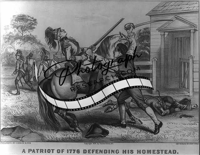 Patriot of 1776 defending his homestead,Sword,Rifle,c1876,Currier & Ives,Photo