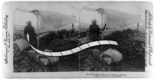 Caloocan,Philippine Islands: On picket duty,c1899,rear view of soldier,bunker