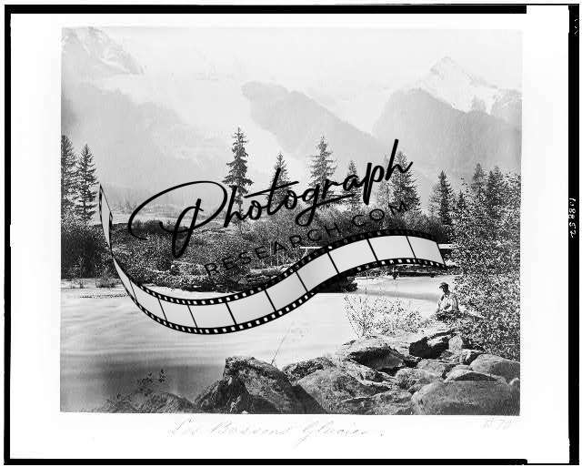 Les Bossons. Glacier,Switzerland--1860's,man by river