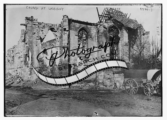 Church at Lassigny,Oise,France,damaged building,rubble,Bain News Service,wagon