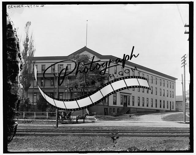 Hotel Cadillac,railroad tracks,Saint Ignace,Michigan,Detroit Publishing Co,1900