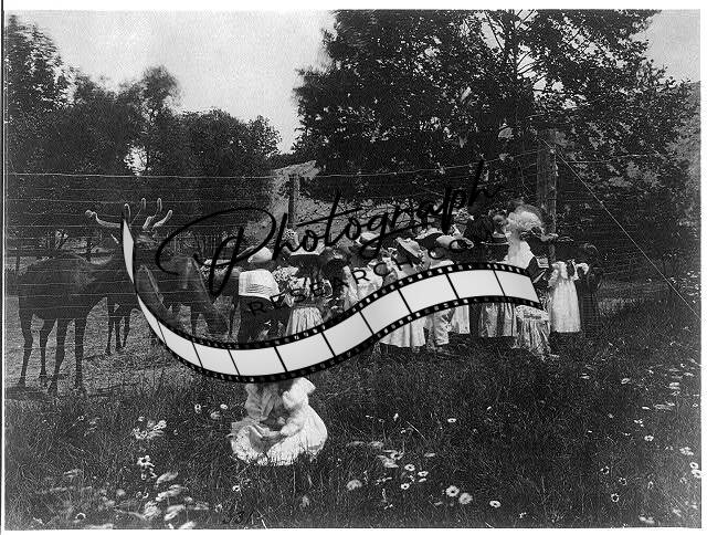 6th Division Class at zoo,watching reindeer,Washington,DC,public schools,1899?