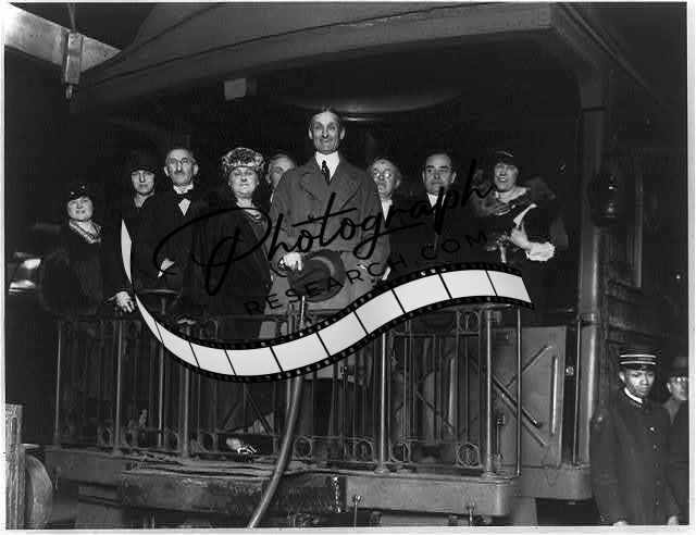 William Gibbs McAdoo,Jr.,1863-1941,standing on back of train with group,lawyer