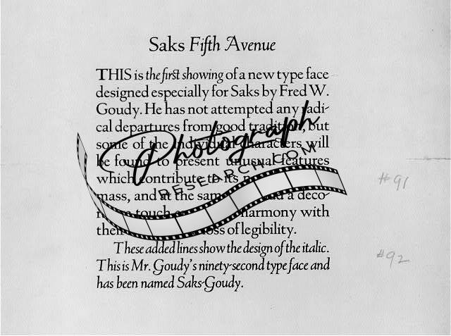 Saks Fifth Avenue,typeface designed by Frederic Goudy for advertisement,1934