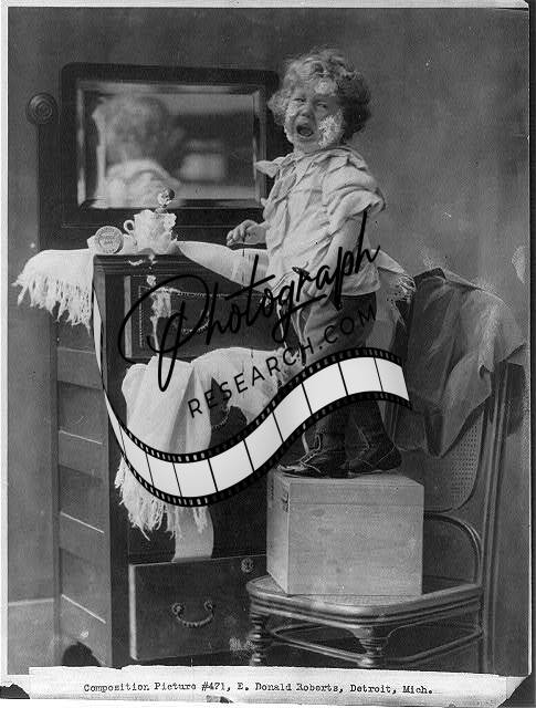 Crying Child,Bleeding Hand,Mirror,Razor,Soap on Face,c1898,Accidents,Household