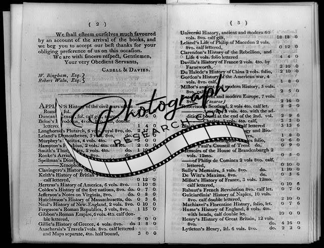Photo of Catalog,Library of Congres,invoice of 1800,prices