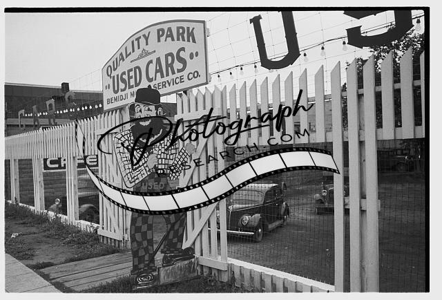 Paul Bunyan at used car lot,Bemidji,Minnesota,MN,September 1939,John Vachon,1