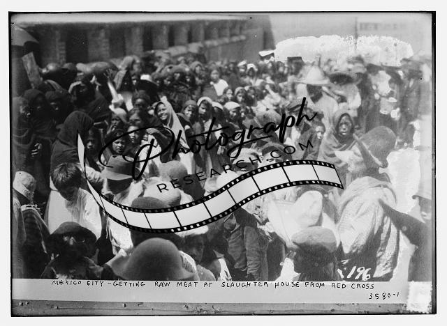 Mexico City -- getting raw meat at slaughter house from Red Cross,women,children