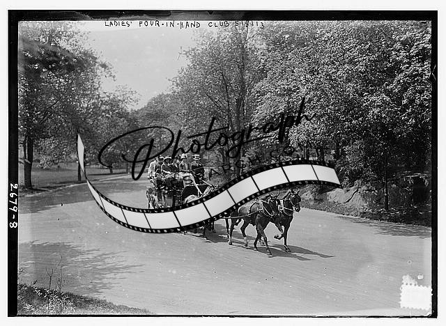 Ladies' 4-in-hand-club,horse drawn carriage,automobile,trees,1910-1915