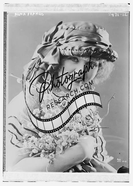 Alma Francis,women,hats,bows,flowers,clothing,dresses,portrait,Bain News Service