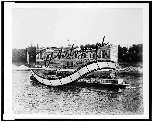 Pavilion,Spain,tourist steamboat,buildings,River Seine,Exposition,France,1889