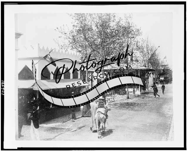 Girl riding donkey,Pavilion,Morocco,street in Cairo,Paris Exposition,France,1889 1