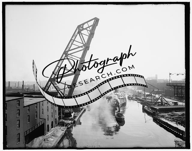 Lift bridge,Superior Avenue viaduct,steamers,boats,ships,Cleveland,Ohio,OH,1900
