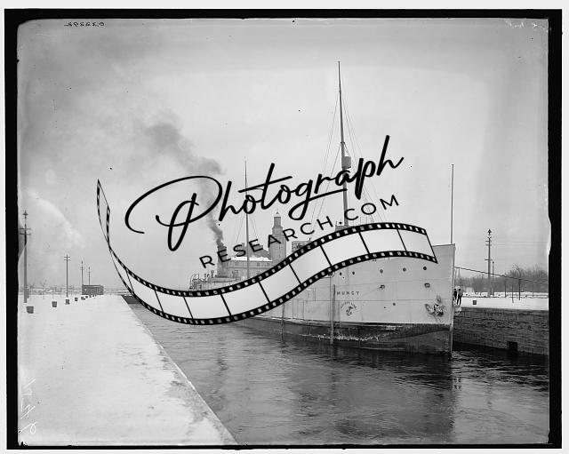 Steamer Muncy,freighter,cargo ships,Sault Sainte Marie Canal,Michigan,MI,1900