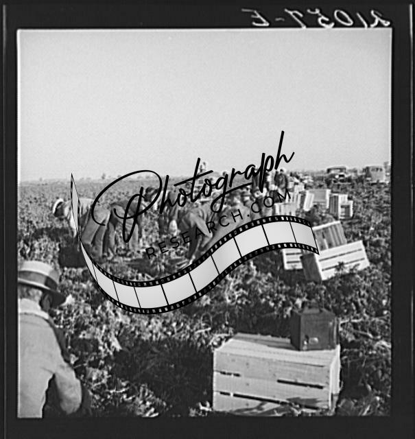 Pea pickers at work. San Luis Obispo County,California,CA,Dorothea Lange,FSA