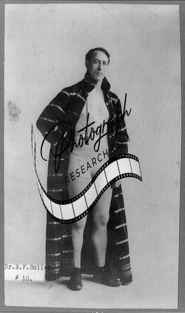 Dr BF Roller,wearing boxing shorts,robe,clothing,c1908