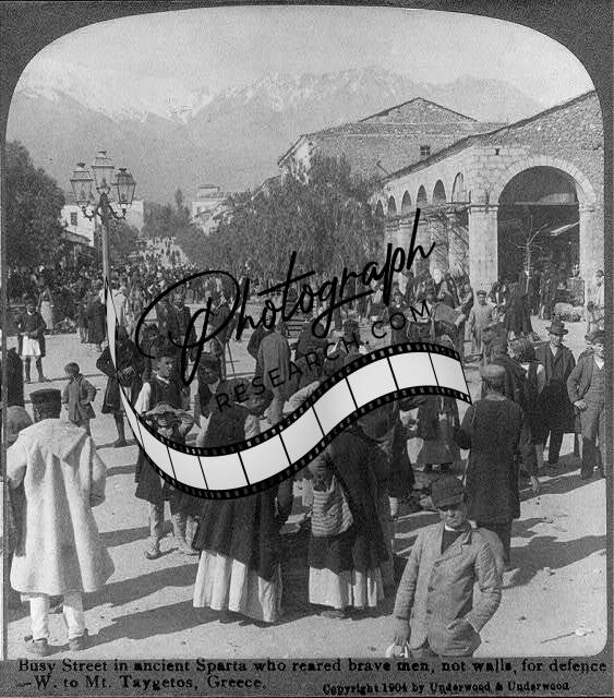 Busy Street Scene,Ancient Sparta,Mount Taygetos,Greece,c1904,Brave Men