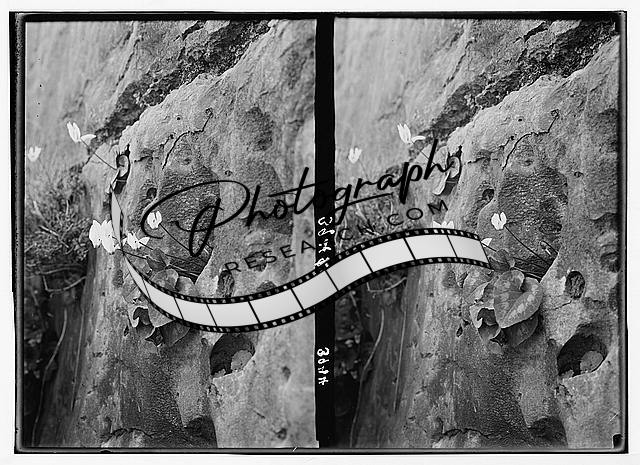 Agriculture,Group of cyclamen,Growing through holes of a great rock,Middle East