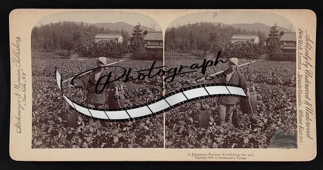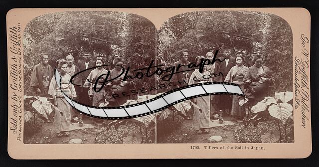 Peasants cutting millet--looking eastward across field to farmhouses, near Yokoh