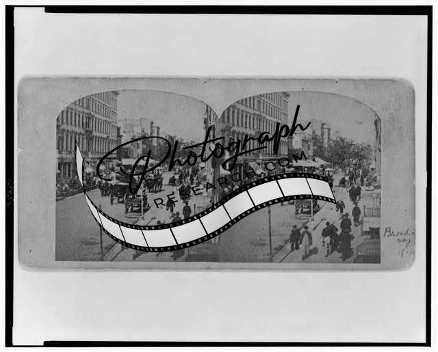 View on B'way,c1862,Busy Street,Broadway,New York City,NYC,people,Reproduction