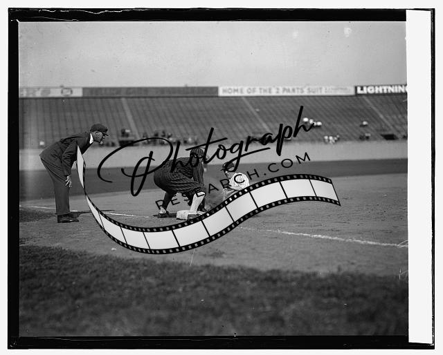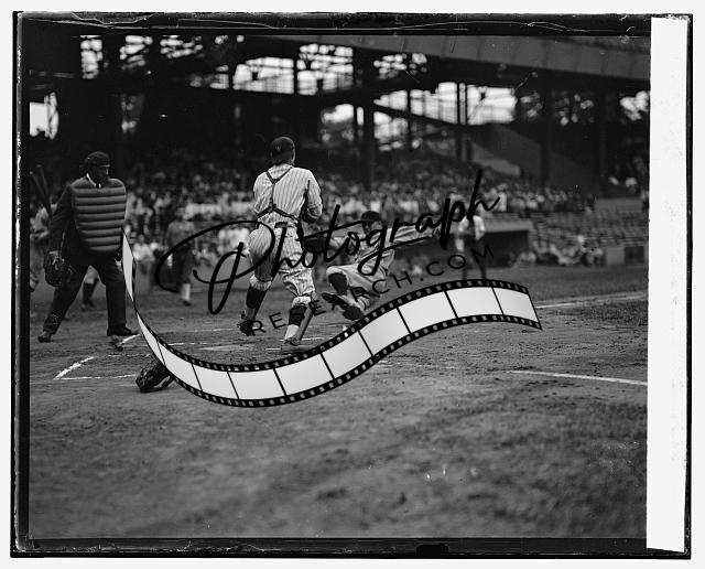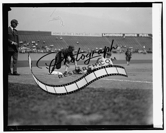 Yankees Babe Ruth out at third,Lou Gehrig single,Ossie Bluege,Baseball,1925