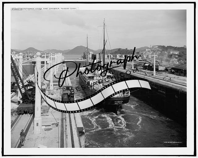 Miraflores Locks,east chamber,hydraulic engineering,ships,Panama Canal,c1910