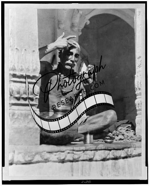 Brahman Priest painting his forehead,India,1900-1923,marks