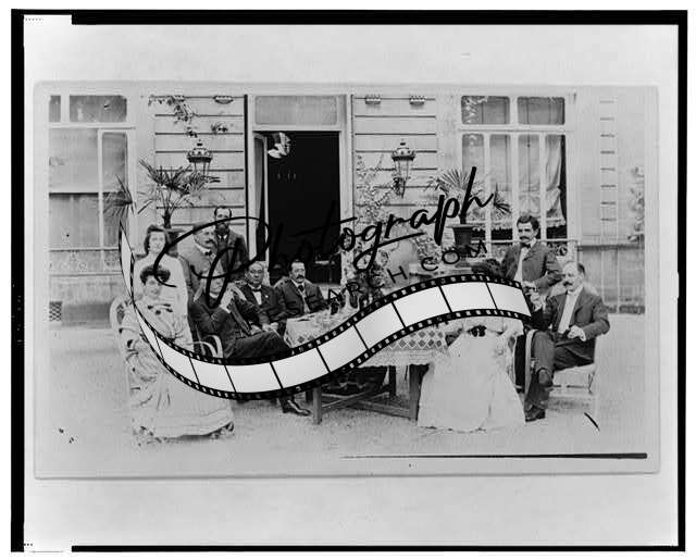 Men & Women gathered around table on patio,Social Life,Eating,1880-1920