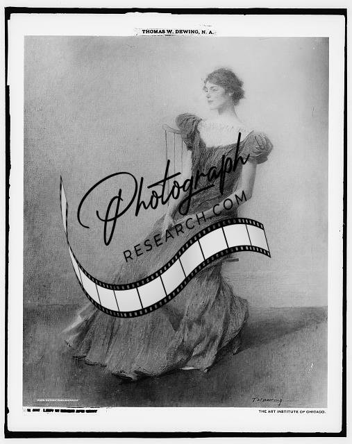Lady,green,gray,women,Thomas Wilmer Dewing,Detroit Publishing Company,c1900