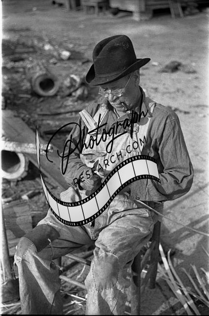 Title: Mixed-breed Indian, white and Negro, near Pembroke Farms, making new chair seat. North Carolina