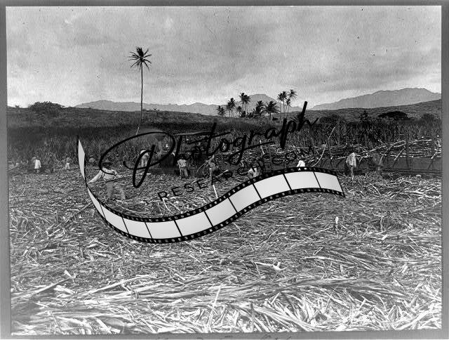 Sugar cane plantation,harvesting,workers,employment,industry,Oahu,Hawaii,1906