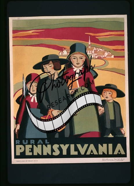 Summary: Poster promoting Pennsylvania, showing an Amish couple.