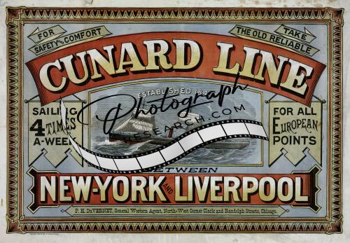 Photo of Advertisement,Cunard Line,New York,Liverpool,1875,Sailing,Ship,Reliable
