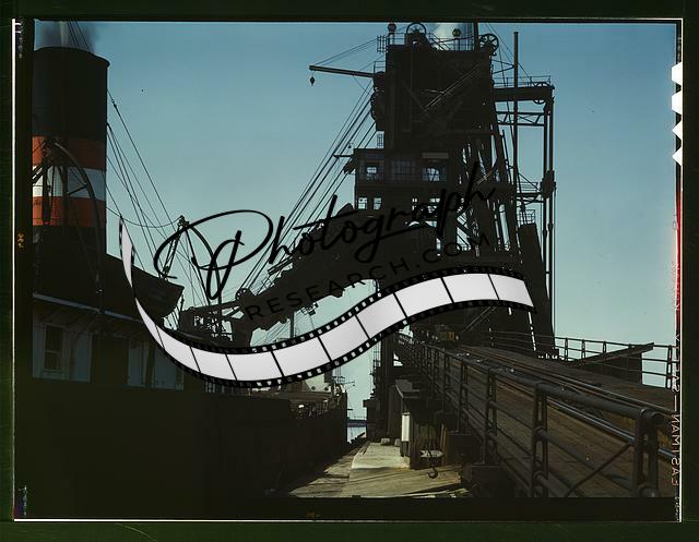 Title: Loading coal into a lake freighter at the Pennsylvania Railroad docks, Sandusky, Ohio